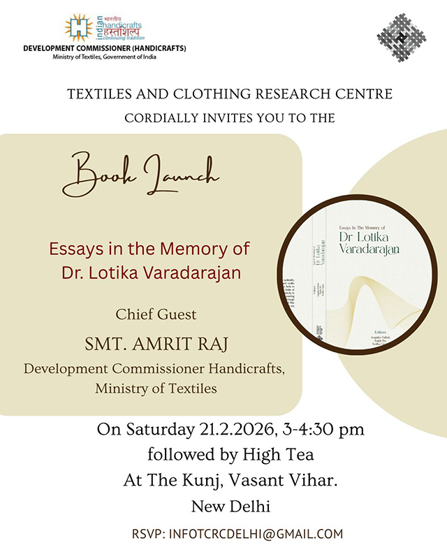 The aim of TCRC as a society is to work towards the collection and dissemination of knowledge in the area of Textiles and Clothing, while collaborating with other researchers in this field of study. India has a legacy of producing the most exquisite textiles, each with its own geographical and cultural marker. The same can be said for clothing, aristocratic as well as from other sections of society. Realizing the need for a common platform for exchange of knowledge in lost textile traditions as well as contemporary practices, a group of like-minded and dedicated researchers including academics, curators, conservators of textiles, designers of clothing, came together to set up TCRC – Textiles and Clothing Research Centre which was launched formally on the 1st of February 2017, at the National Museum in the presence ofDr. B R Mani, Director General (National Museum).